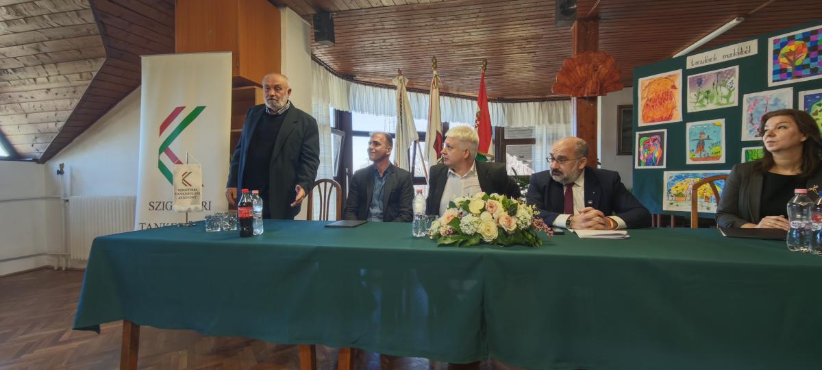 A mai napon intézményünkben tartott projektnyitón beszédet mondott Nagy Csaba országgyűlési képviselő, Bognár László, a Szigetvári Tankerületi Központ vezetője, Magda József, Nagypeterd polgármestere, Varga Zoltán, a projekt tervezője, valamint Meszes-Szabadi Bernadett, intézményünk igazgatója.